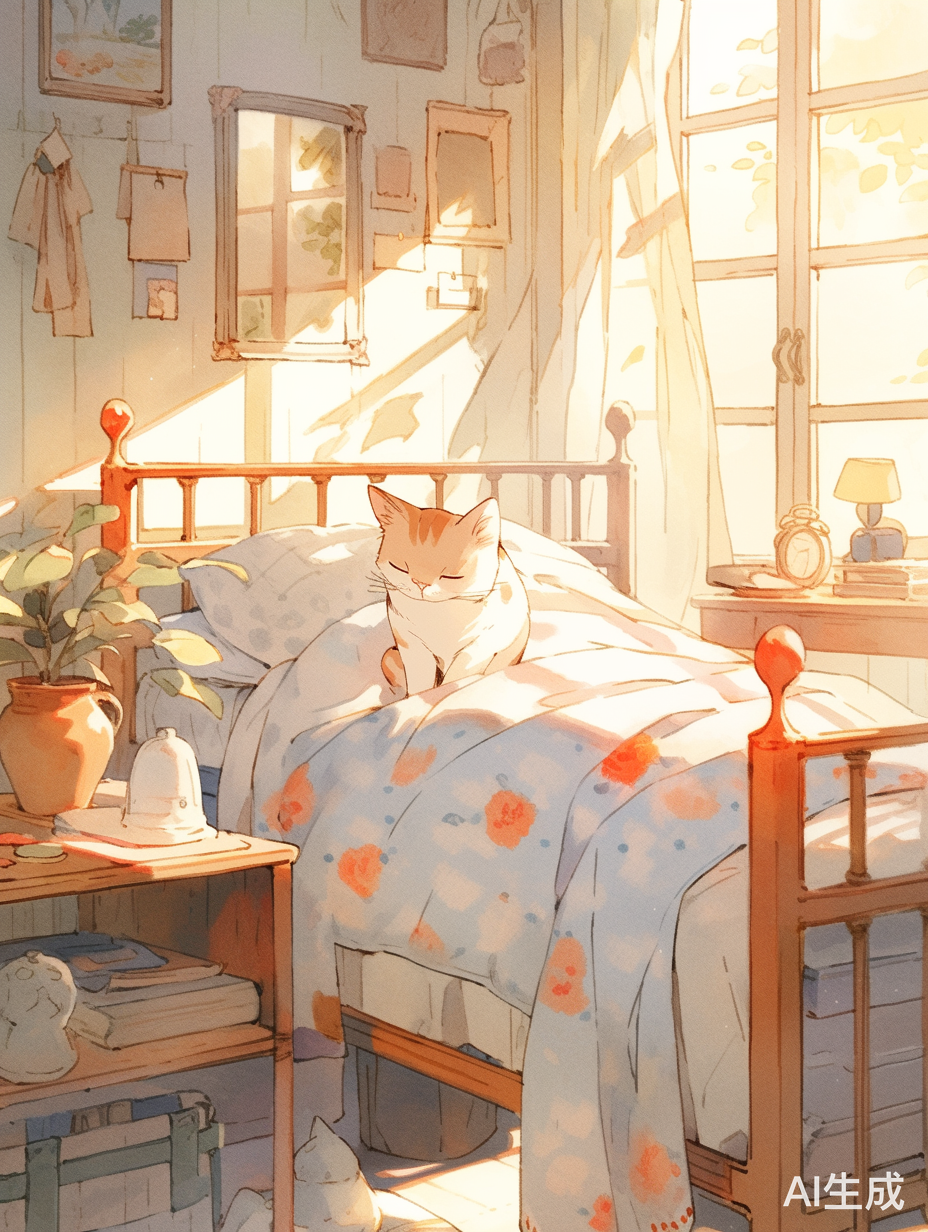 中国风古代建筑,宏伟宫墙旁的金黄桂花树,繁茂的枝叶间点缀着密密麻麻的香桂花,清新馥郁的香气四溢,旁边一只悠闲的橘猫蹲坐在青石地面上,目光好奇地观察,画面宛如水墨画般层次分明,色彩柔和,营造出宁静的古典氛围。