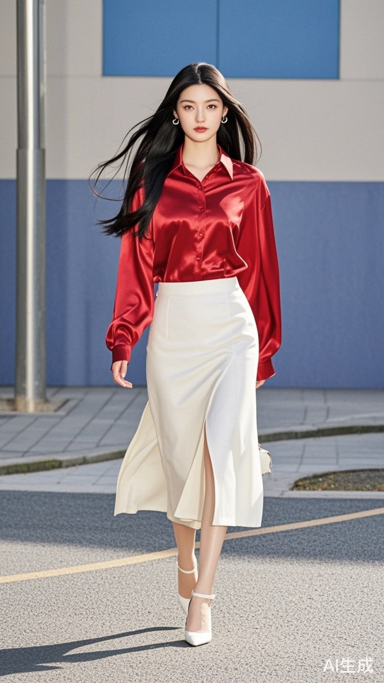 女子展现出清新甜美的学生风穿搭。她留着乌黑的长发,一侧别着精致的花朵发夹,妆容淡雅。上身穿着白色短袖衬衫,领口敞开,搭配一条黑灰条纹的领带,下身是黑色百褶短裙,整体造型简约又青春洋溢。背景是白色墙面,阳光透过树叶留下斑驳光影,衬托出她清纯可人的气质,这种穿搭在校园和日常休闲场景中都很常见,尽显少女的活力与朝气。