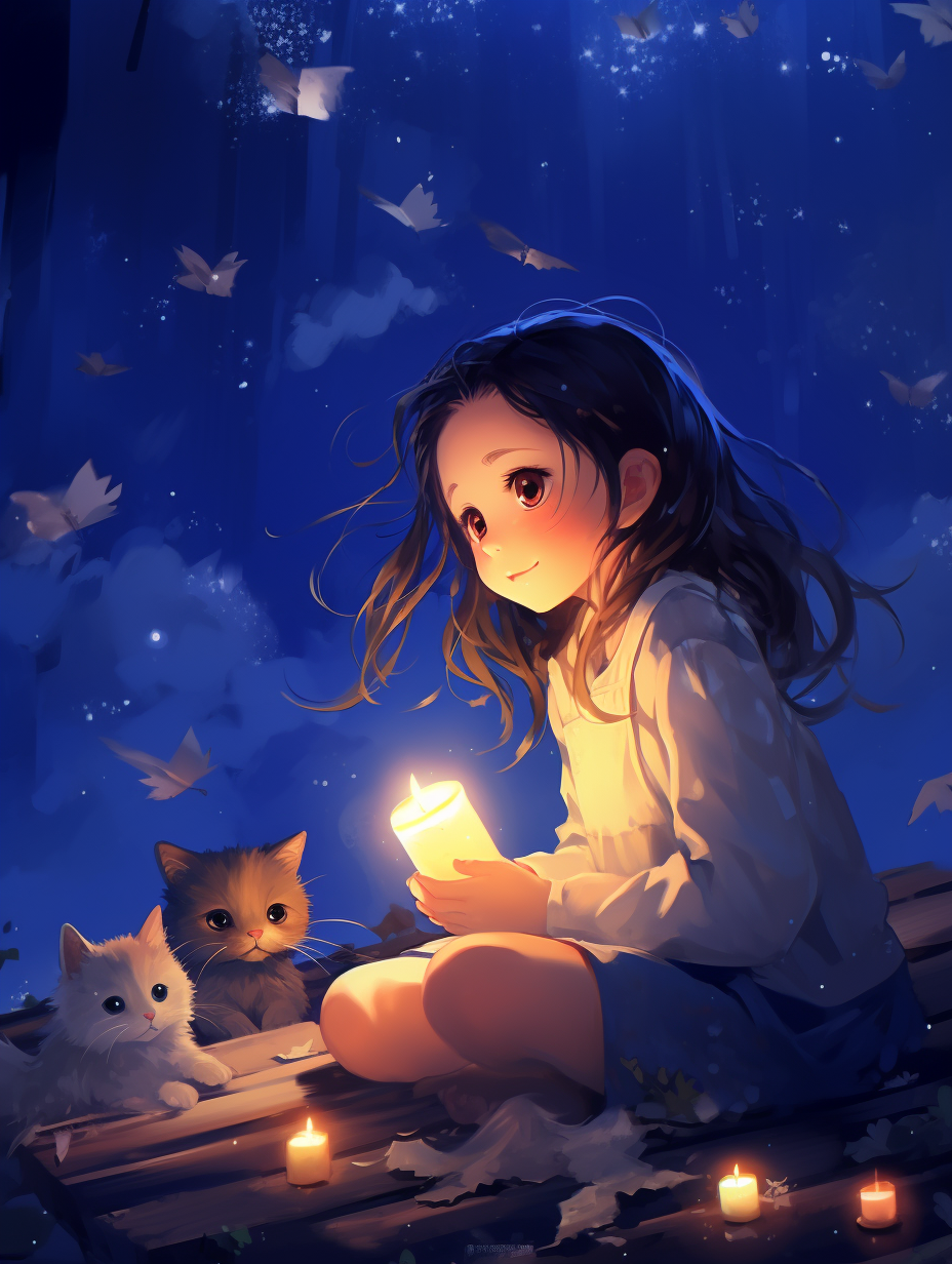 图宫崎骏风格,一个勇敢的小女孩历尽艰辛万苦寻找梅花救治母亲。女孩独自一人来到神秘的森林。夸张的比例表现、柔和的光线效果、背景虚化突出主体互动。超高清,超细节,镜头聚焦在雪狼守护梅花的场景和小女孩昂首挺胸勇敢的面对