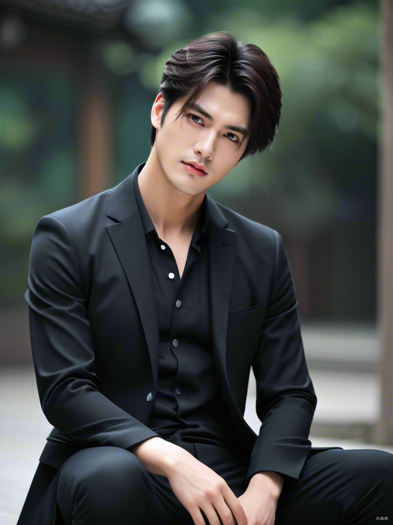 伪厚涂,半身镜头,面部大特写,魔幻古风,魔尊,BJD,男,深黑色古装汉服,刺绣鎏金黑色恶魔大袖衫,黑色长发及腰,化妆,精美绝伦的五官,皮肤白皙光滑细腻,黑色眼线,黑色眼影,泪痣,灰色剑眉,腹黑,五指白皙修长,皮肤光滑如瓷,美男,风流,手持黑色仙剑。漫画风格,漫画线条加粗,高对比度线条,线稿优先,清晰轮廓,硬边线条,手绘线稿质感,凌乱线条,复古网点,黑色描边,强轮廓线,尖锐线条,装饰性线条:添加花纹、纹路等细节线条(如服饰褶皱、道具纹理) UHD,电影感,电影般的,超高分辨率,最高细节,最高质量,深景深,64K,超高清画质。左侧身视图和正视图