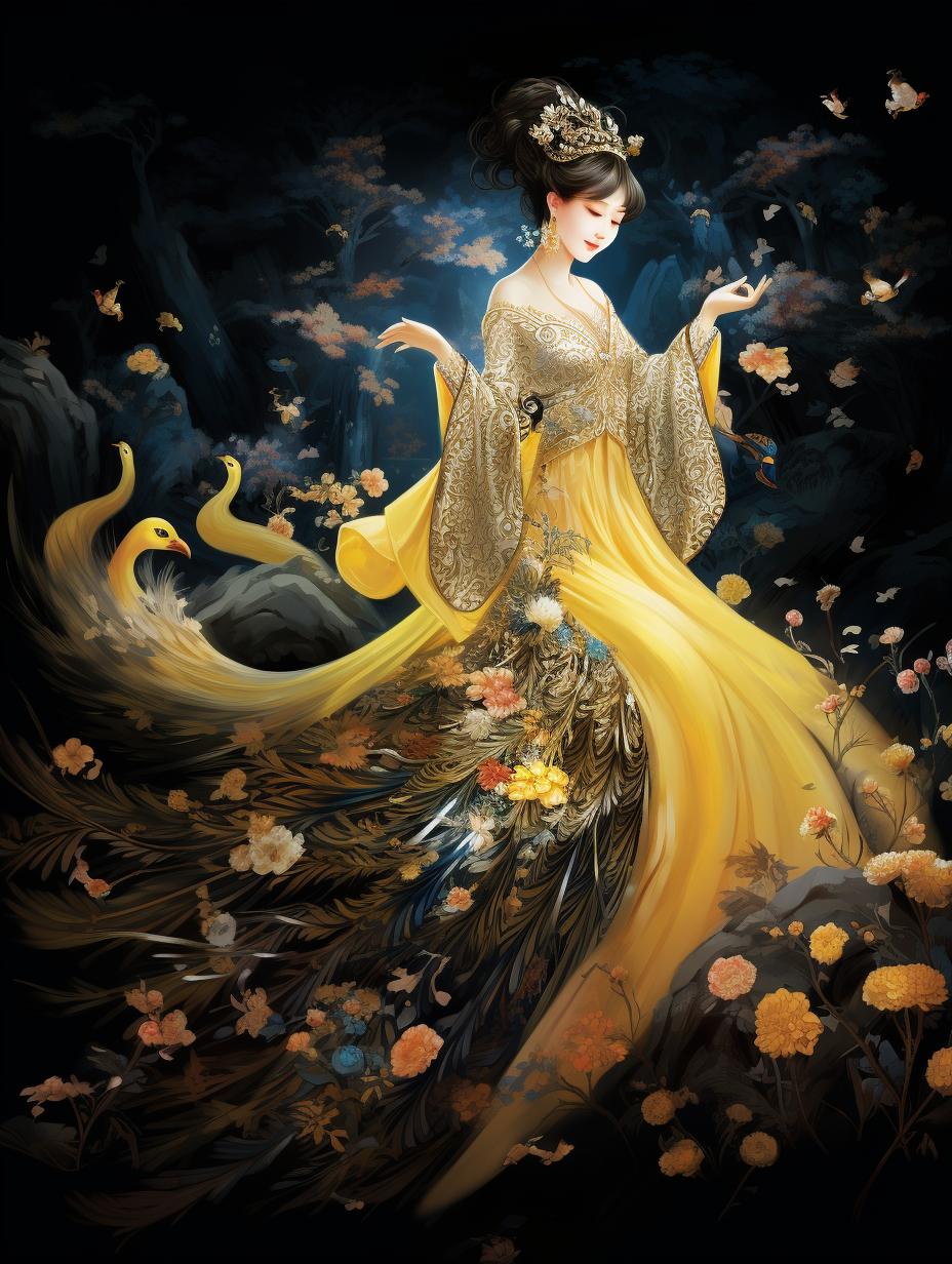 在深邃无垠的黑色背景衬托下,一根通体闪耀着璀璨金光的树枝状长法杖傲然挺立。它长度约6英尺,仿佛是从神秘的黄金国度延伸而来。杖头和杖身完美保留了原始树枝未经切削的自然形态,那蜿蜒曲折的线条,宛如古老岁月里树精的奇妙舞步。枝干上的纹理细腻清晰,每一道沟壑都似在诉说着不为人知的传奇故事。金色的光芒柔和而又明亮,似有一层薄纱般的光晕在周围萦绕,与深沉的黑色背景形成鲜明对比,更凸显出法杖的神秘与高贵,让人忍不住为之倾心,仿佛它拥有着开启未知世界的神奇力量。