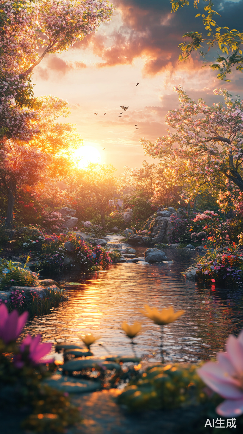 从此,一个太阳每天从东方升起,西方落下。 大地滋润起来,花草树木繁茂起来,江河奔腾欢唱,大地上重新现出了勃勃生机。